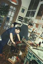 | "...De pronto aparece en Buenos Aires uno de los talleres que reconfortan. Donde se trabaja para el arte, con el humilde sentido de la profesión indispensable, ineludible, incorporando todo lo que el hombre va aprendiendo o inventando. |